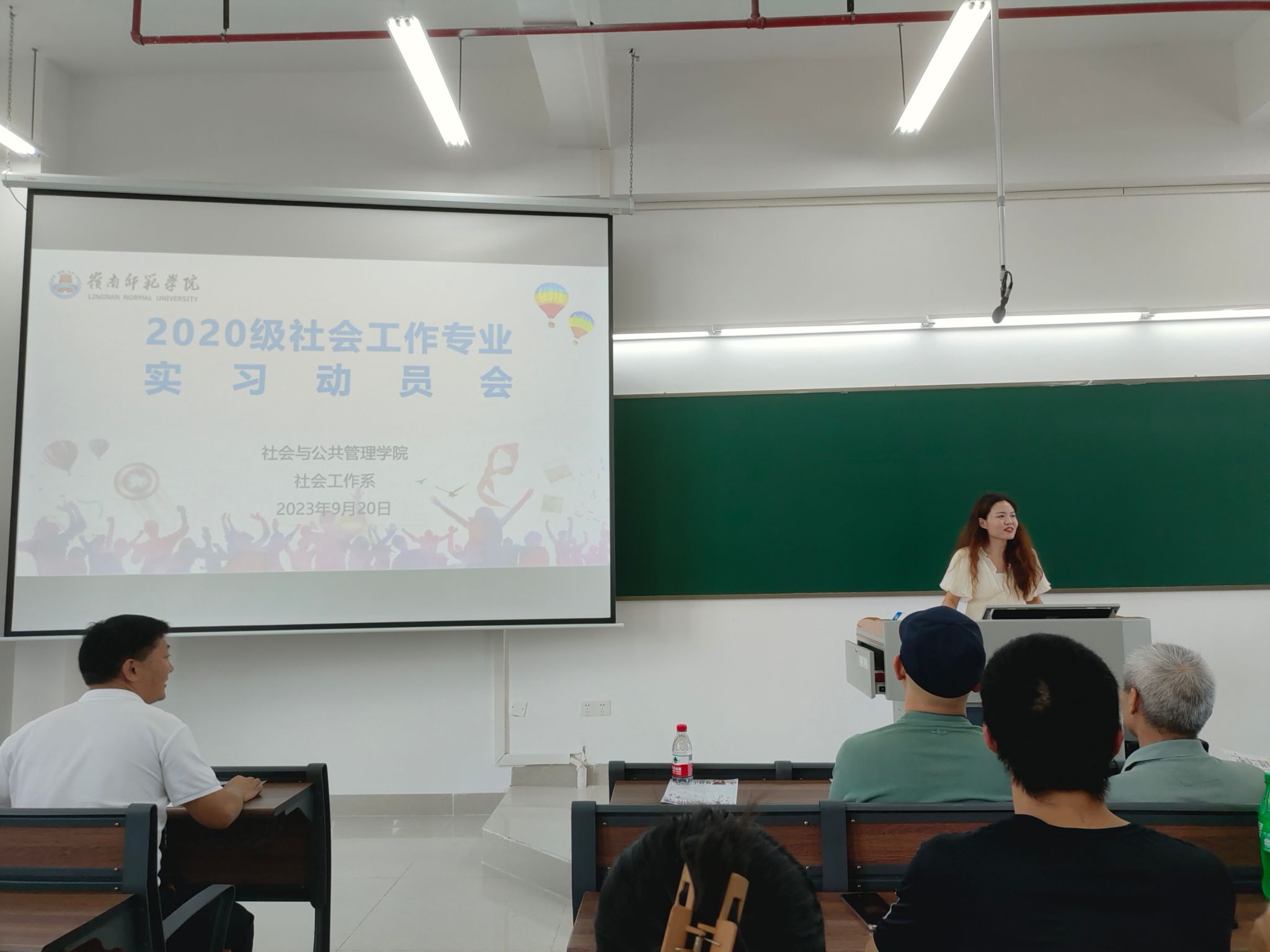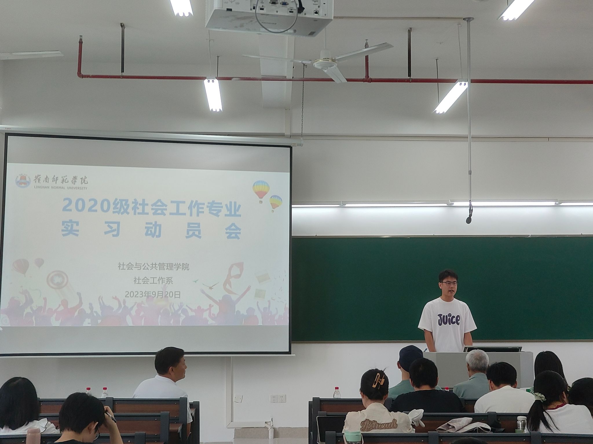 为推进2020级社会工作专业实习工作,引导学生做好实习前的各项准备,9月20日下午,我院社会工作系于第五教学楼F105教室召开了2020级实习动员会。出席本次大会的有我院副院长黄剑教授、社会工作系主任谢正富、副主任黄家滨、教师谭春光、吴金凤、何一明、刘金英、陈莉以及深圳市维度数据科技股份有限公司人事专员洪月,2020级社会工作专业全体学生共80余人参加了本次大会,大会由社会工作系教师胡林琦主持。