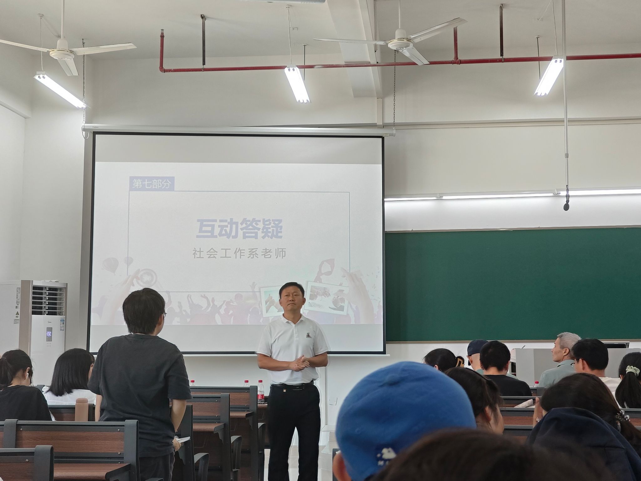 在互动答疑环节中,同学们针对实习单位、实习任务、实习时间等方面的疑惑踊跃提问,社会工作系的各位老师一一进行了详细地解答,并对即将进入实习阶段的同学们给予了一些宝贵地建议。