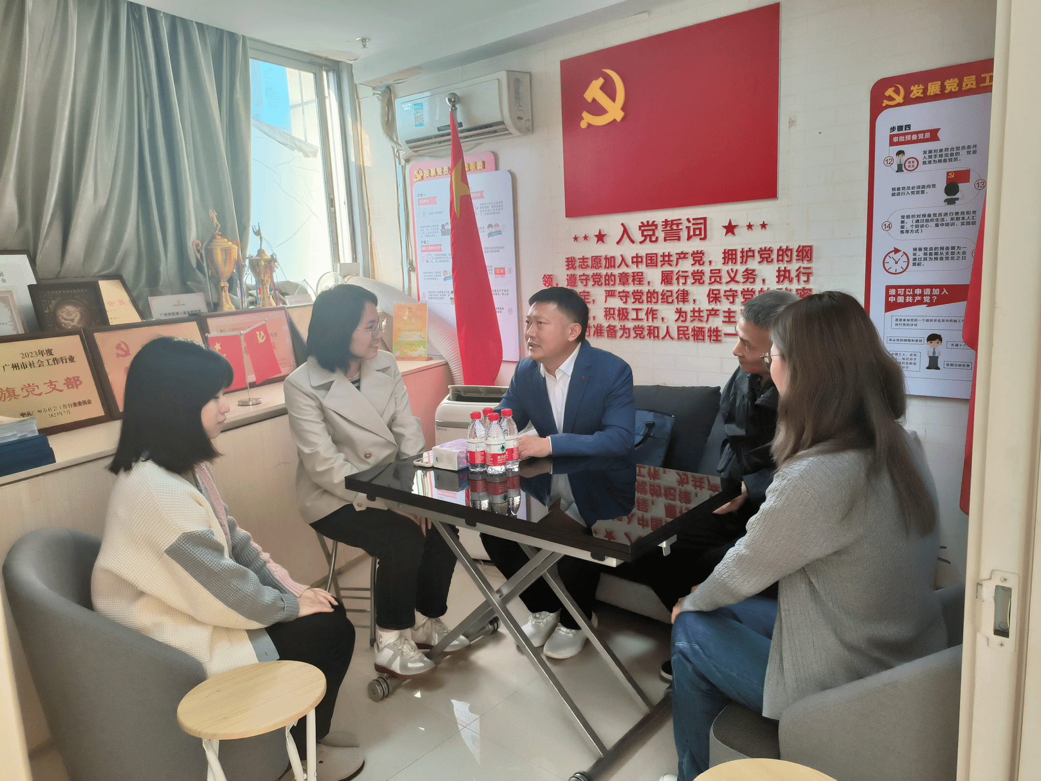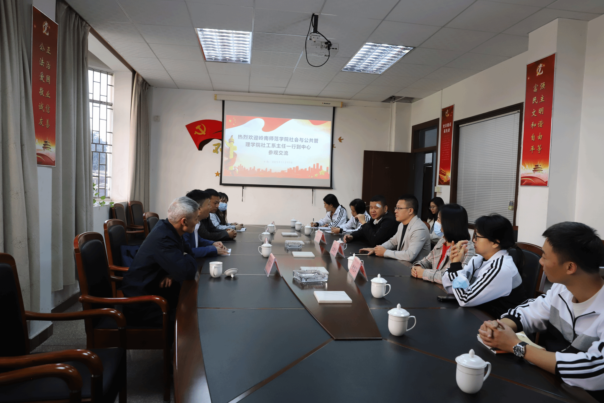 11月16日下午5点,参访组来到广州市天河区员村街社工服务站(天河区志愿者协会、慈善会、启智社工),陈立会长对参访组的到来表示热烈欢迎。双方就社工站服务内容、人才培养、毕业生就业合作等方面展开了深入交流。参访组老师详细询问了在此实习的刘芊彤同学的工作学习情况,鼓励刘芊彤同学在实习周记中认真写好专业反思,注意广泛收集第一手资料,为毕业论文储备丰富材料。