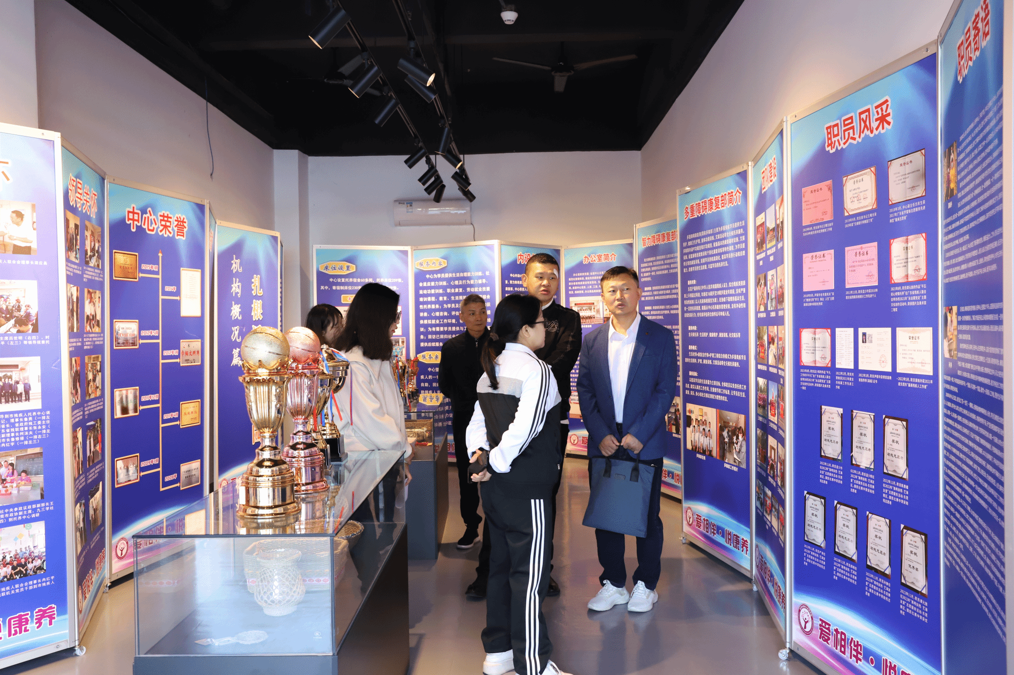 林主任、方主任介绍托养中心发展历程、成果及荣誉
