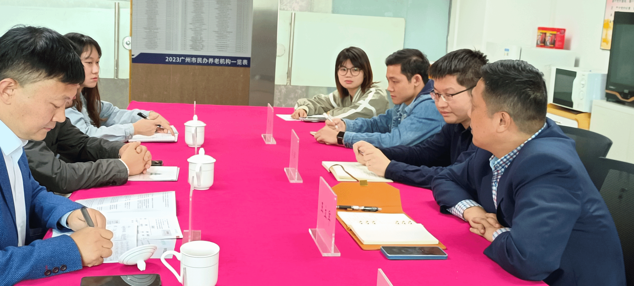 11月16日下午两点,参访组一行来到位于荔湾区的广州市社会福利与养老服务协会(简称福协),受到广州福协王立军会长、余志晖秘书长、王俊杰副秘书长、徐铿老师的热情友好接待。余志晖秘书长介绍了福协的业务领域、组织架构、运行模式、会员分布等情况。福协是从广州市民政局脱钩出来的平台型枢纽组织,承担了养老规划、服务标准制定、人员培训、资格审核、等级评估、养老补贴发放审查等职责,是广州市养老企业及机构的行业协会,拥有较大的行业管理权。王俊杰副秘书长对正在福协实习的唐琪俏同学从工作态度、吃苦精神、专业素养等方面给予了积极中肯的评价。唐琪俏同学从暑假就开始在这里实习,实习过程中接触到养老政策及细化具体执行,也时常到社区颐康中心审核老人助餐、临时照护等服务落实情况,其出色表现得到部门领导和服务对象的好评和肯定。王立军会长对当前的养老政策和现实困境以及未来的发展进行了深刻分析,认为社工和医生是养老服务两大专业支撑,社会工作专业的“同理心”“共情能力”“助人自助理念”等在养老服务中将会发挥更大的作用。王会长还就基本养老究竟应该保障哪些具体的服务等问题与大家进行探讨。谢正富老师向福协介绍了社工系的发展历程、专业力量等,也征求了实习基地方面对人才培养的意见建议。最后双方表示将在学生实习实践、就业、社会服务、实务研究等方面加强合作力度、扩宽合作范围,推进校地合作深度。