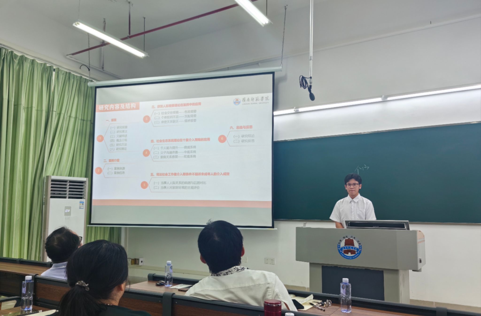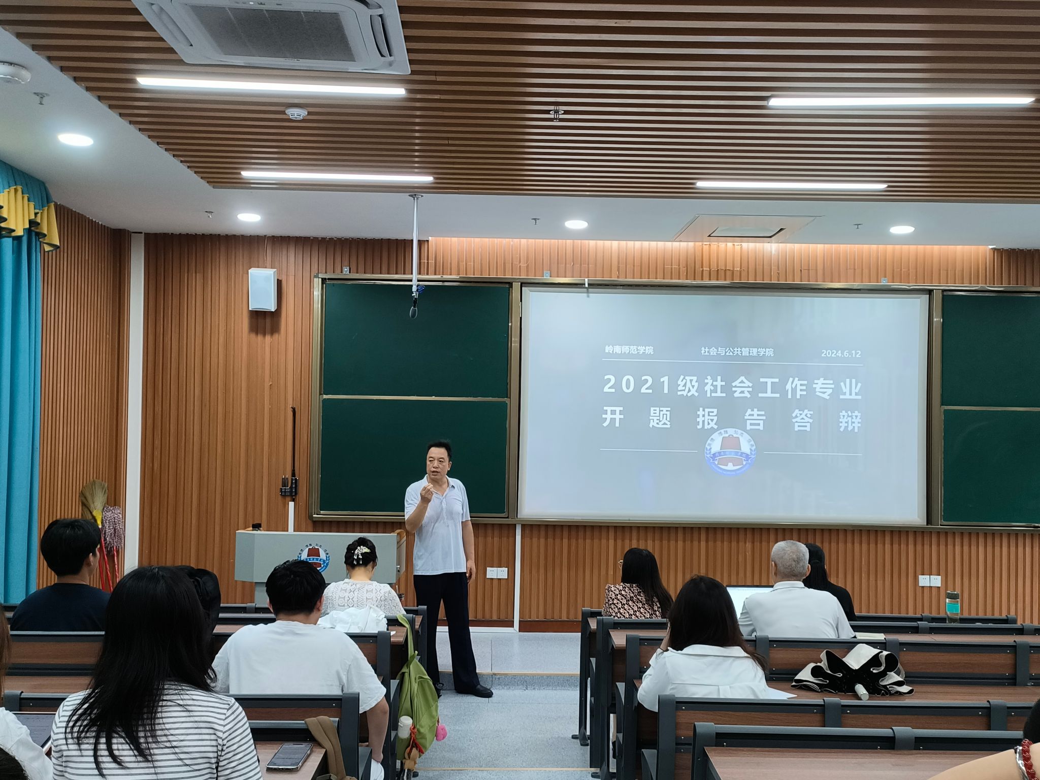 为保证毕业论文选题质量,确保毕业论文后续工作顺利开展,6月12日下午,我院社会工作系在第五教学楼开展了2021级本科生毕业论文开题答辩,本次答辩设置了2个答辩小组。我院教学副院长黄剑教授、人力资源管理系主任石建忠教授、社会工作系主任谢正富老师、副主任黄家滨老师、社会工作系全体教师以及2021级社会工作专业80名本科生参加了此次开题答辩。