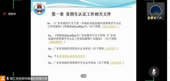接下来,我院勤工资助部干部何健鑫对本次家庭经济困难学生认定工作进行了讲解。干部借助相关文件及PPT演示生动、简洁地讲解了本次工作的具体内容,主要分为以下四点: