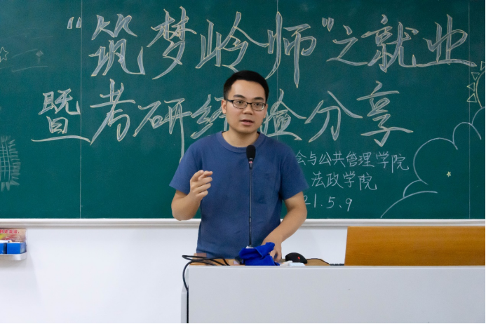 5月9日晚,社管学院及法政学院于弘雷楼605室举办2021年“筑梦岭师”系列课堂之就业暨考研经验分享会。社管学院辅导员李从来老师、勤工助学中心负责人何健鑫、自强社干部董思颖、机电学院干部张忠席、祁正香、数计院干部李秋惠、外语院干部江澄科以及17社工1班曾祎、17思政1班冯淑睿出席本次活动。