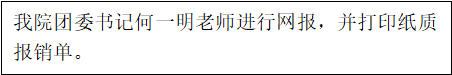 (4)报销单由我院团委书记何一明老师负责网报并打印出纸质版,并在报销人/经办人处签名。