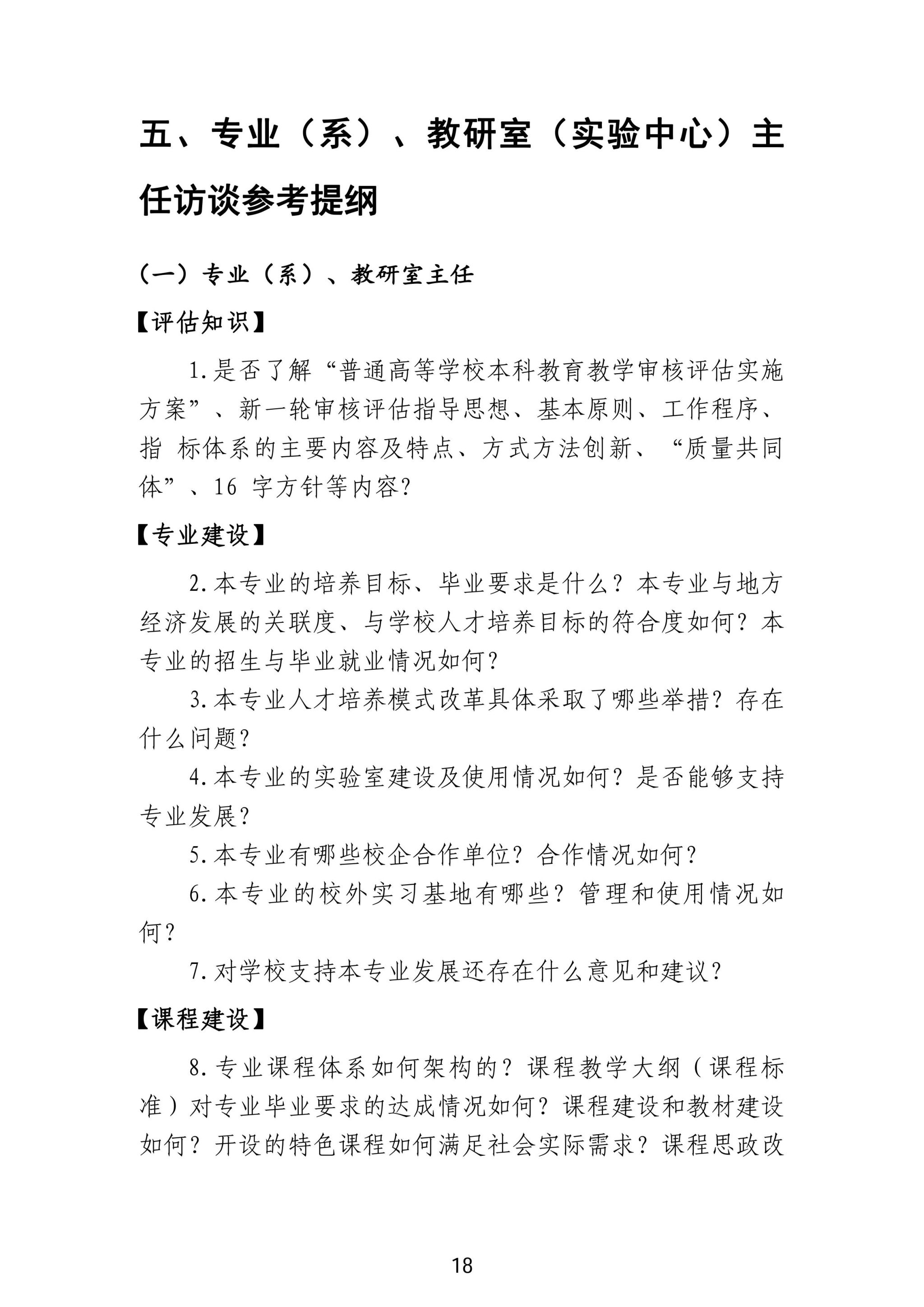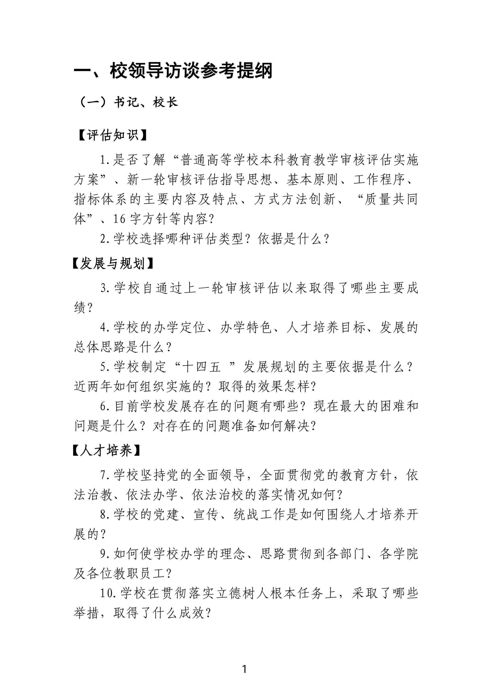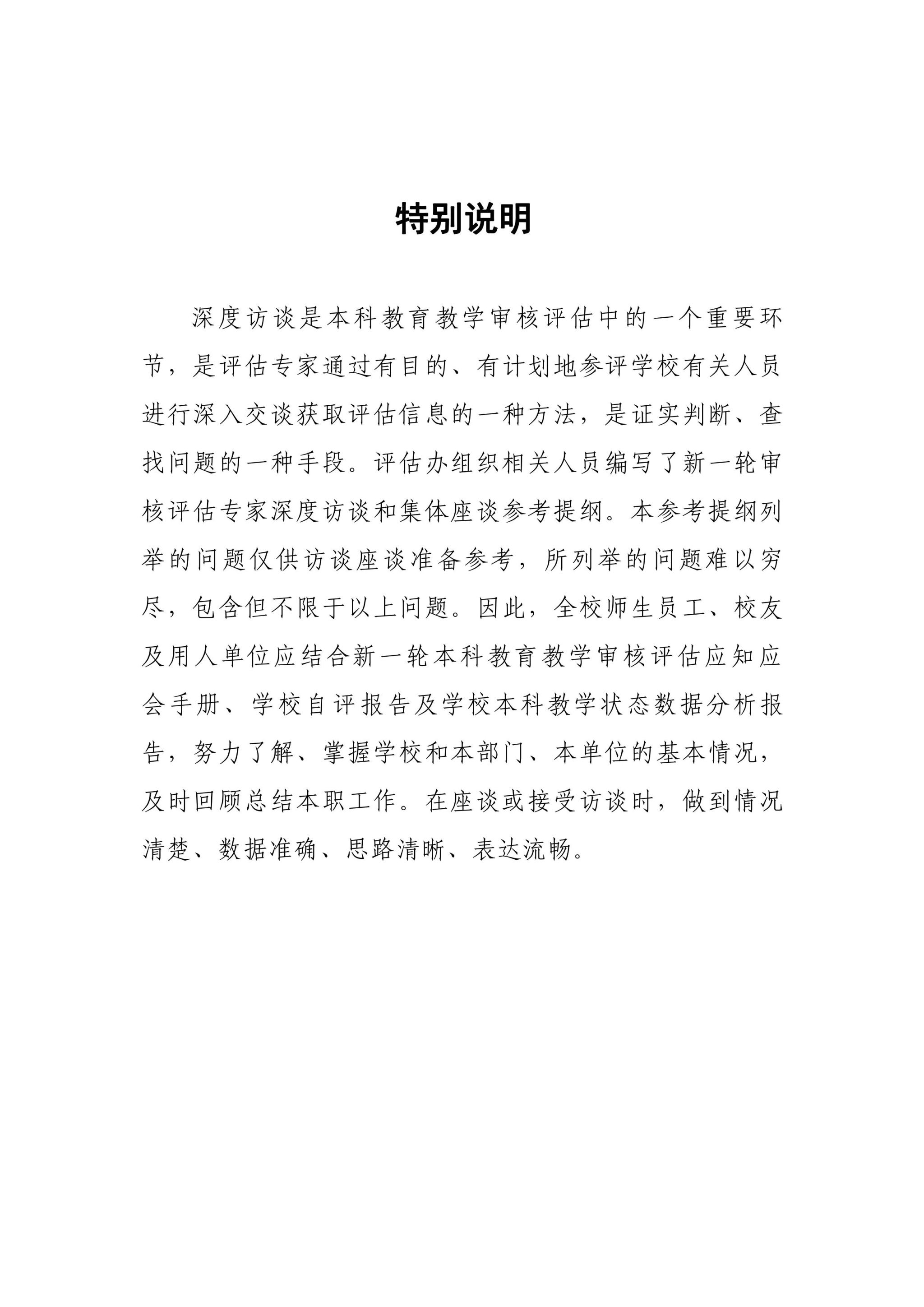 【迎评须知】新一轮审核评估深度访谈和集体座谈参考提纲