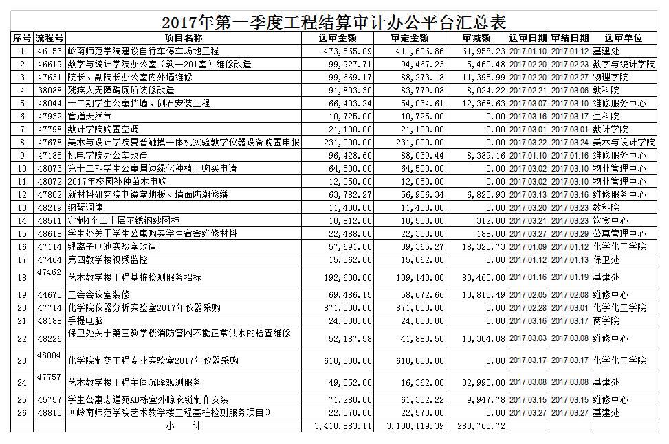 2017第一季度工程结算审计办公平台汇总表