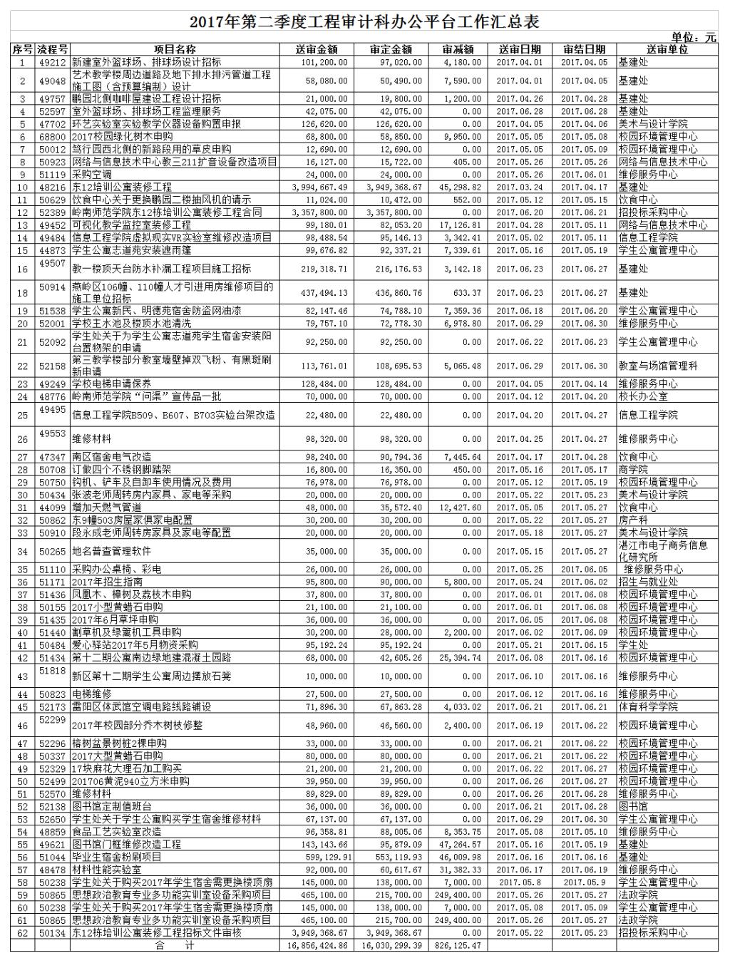 2017年第二季度工程审计科办公平台工作汇总表.xls