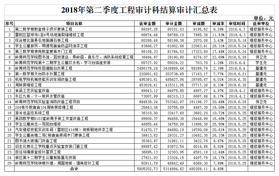 2018年第二季度工程审计科结算审计汇总表.png
