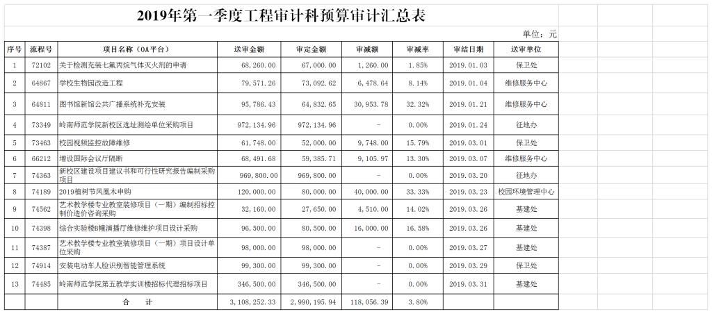 【20190404】2019年第一季度工程审计科预算审计汇总表.xls