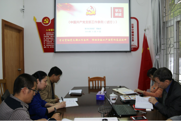 为进一步推动“两学一做”学习教育常态化制度化教育活动,全面提升党支部组织力,强化党支部政治功能,不断提全体党员干部的政治思想水平。12月20日,审计处党支部召开支部扩大会议,组织全处党员干部对《习近平总书记在庆祝改革开放40周年大会上的重要讲话》精神和《中国共产党支部工作条例(试行)》进行了深入学习。