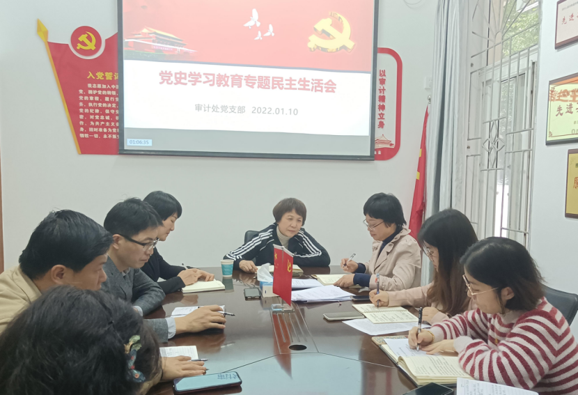 2022年1月10日下午,审计处党支部召开2021年度党员领导干部党史学习教育专题民主生活会,校长兰艳泽到会指导并作点评讲话。