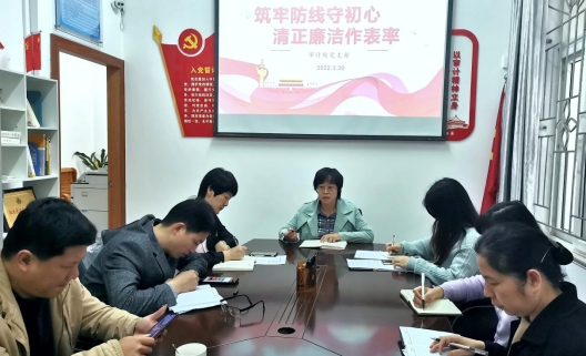 党支部书记颜日娟以传达中国共产党第十九届中央纪律检查委员会第六次全体会议精神为主要内容,结合审计工作实际,给全体审计人员上了一堂廉政专题党课。她强调,审计监督是党和国家八大监督体系之一,我们作为审计人员要保持全面从严治党永远在路上的清醒坚定,在思想上要时刻自省,警钟长鸣,严格执行审计“四严禁”“八不准”工作纪律,在行动上要坚持原则,敢于担当,坚决同一切腐败行为作斗争。