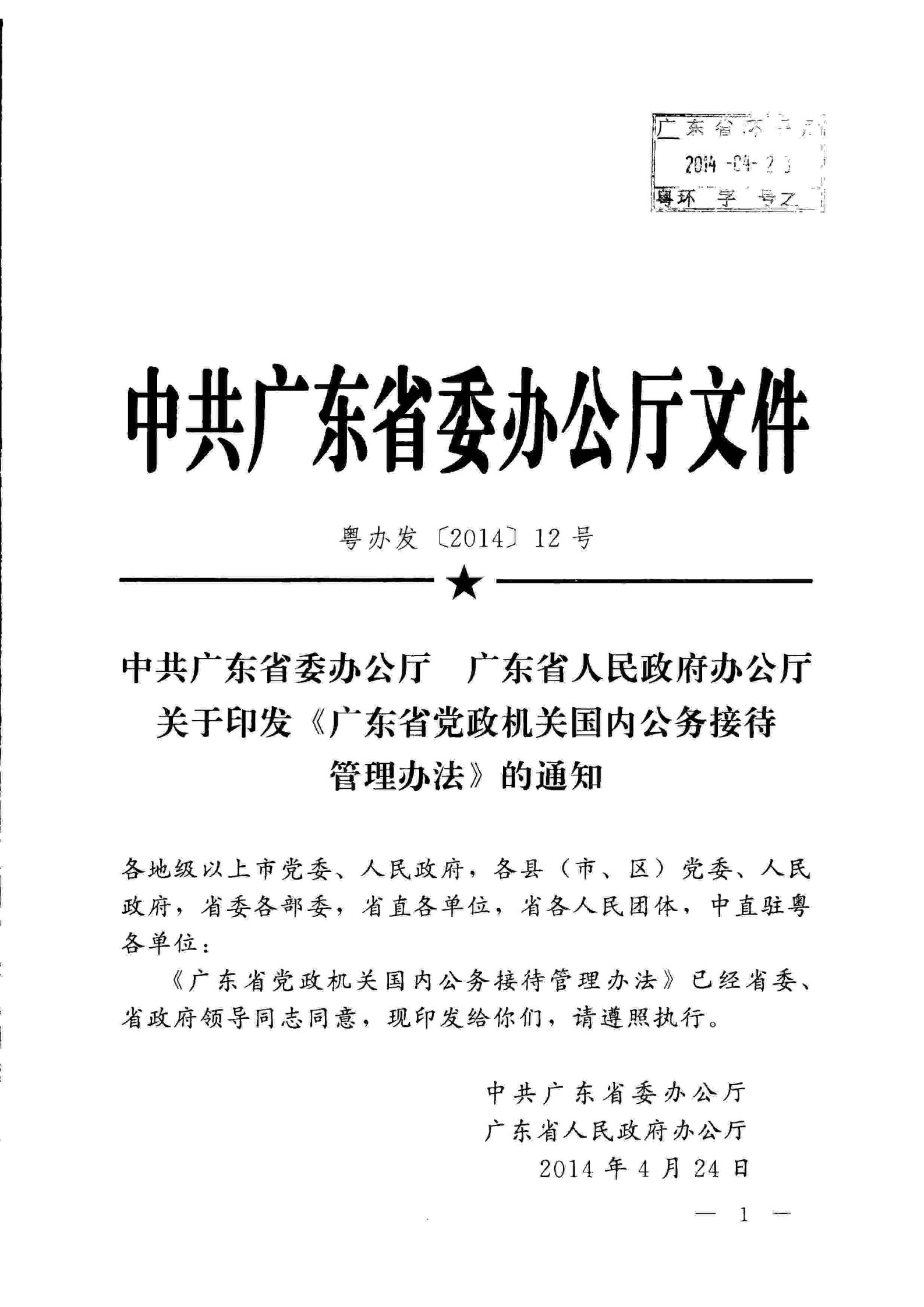 广东省党政机关国内公务接待管理办法
