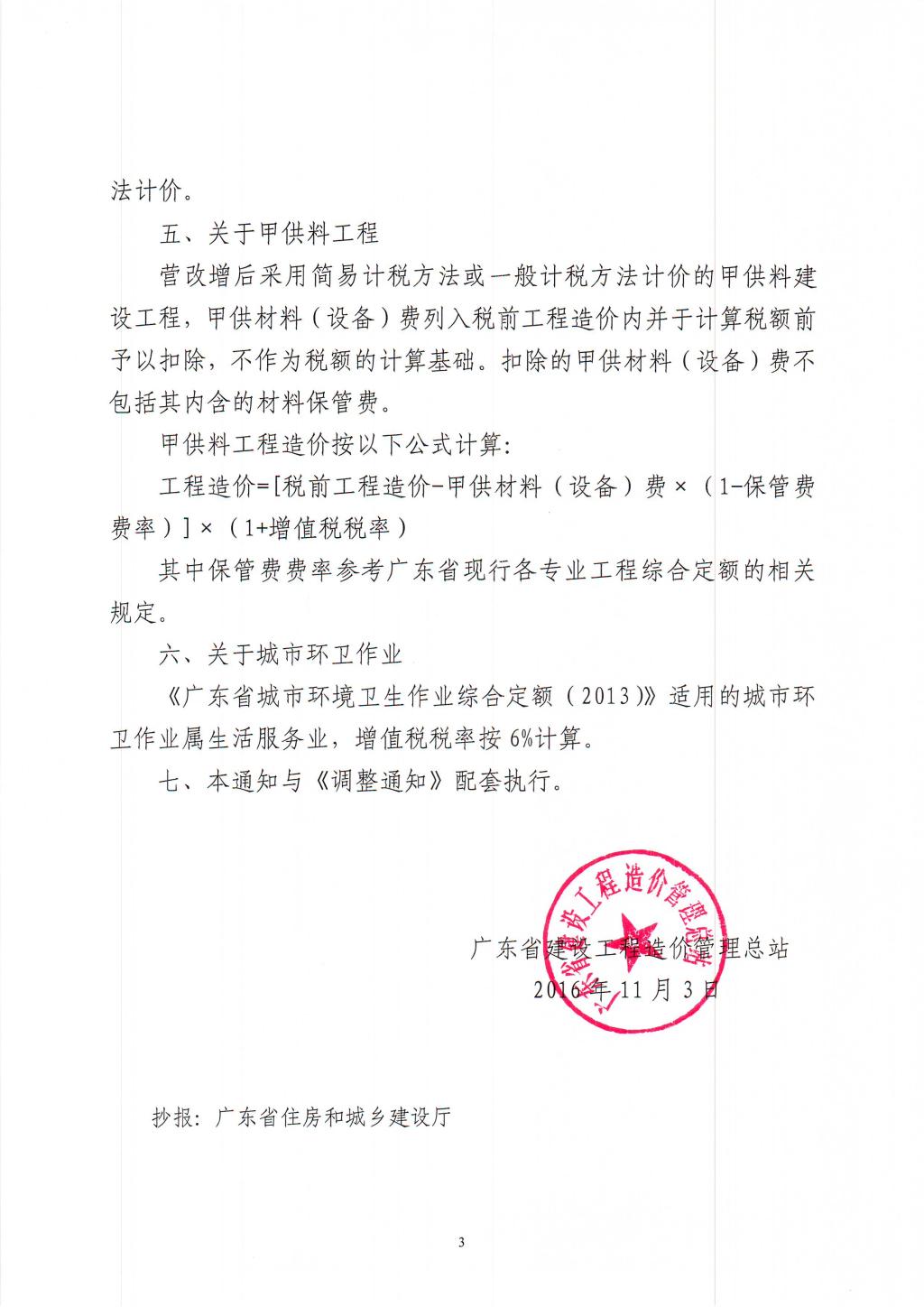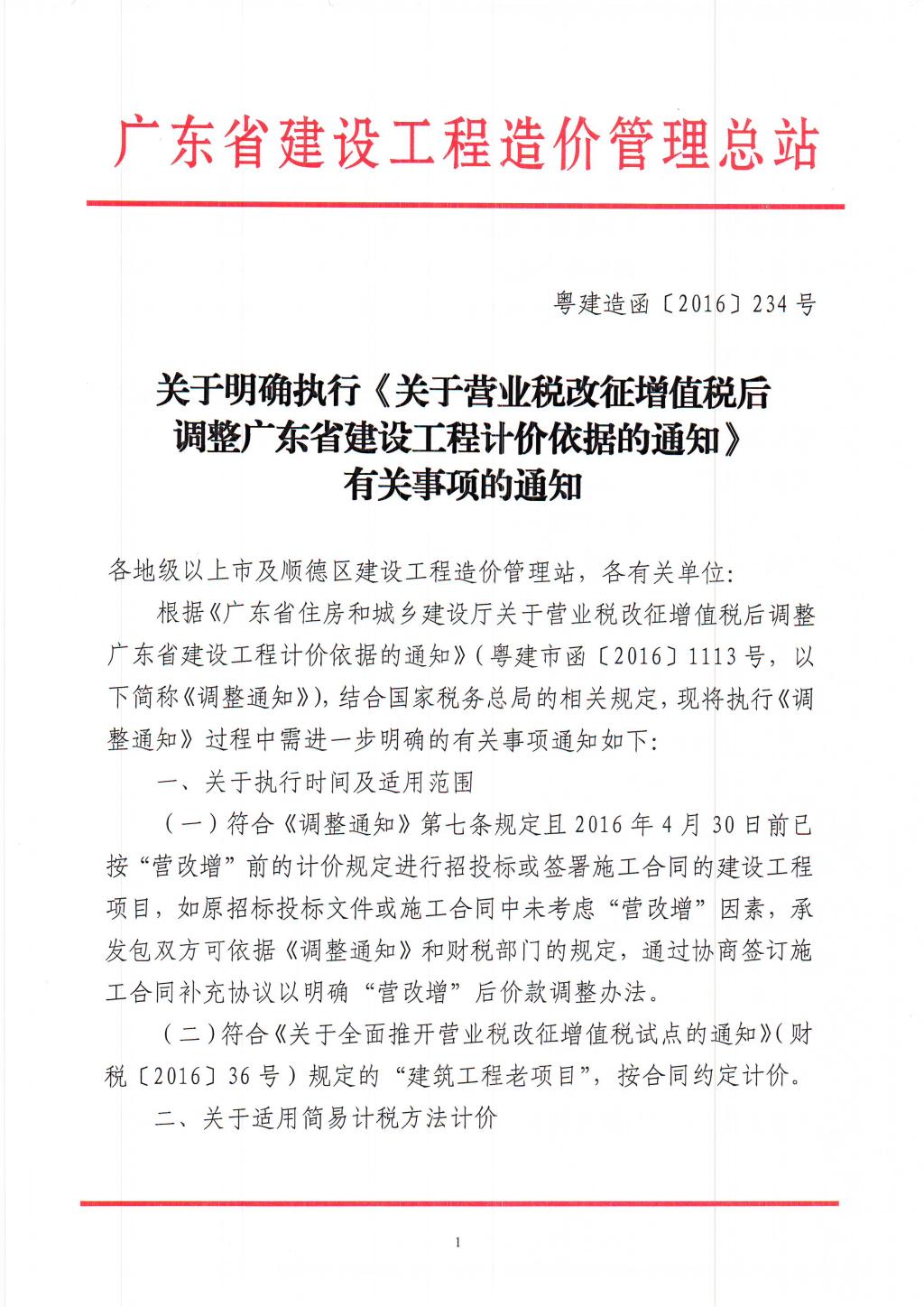 关于明确执行《关于营业税改征增值税后调整广东省建设工程计价依据的通知》有关事项的通知