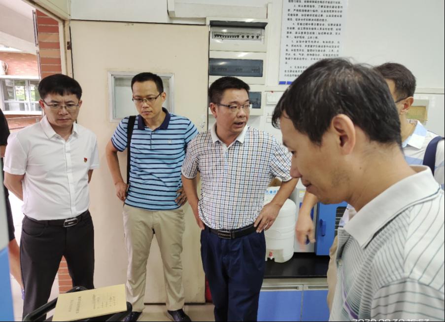 为做好我院实验室在国庆节期间安全工作,9月30日下午,食品科学与工程学院党委书记欧海清,副院长杨胜远(主持行政全面工作),党委副书记刘淑芬,副院长王标诗和胡小军及辅导员袁嘉渝一行人前往实验室进行实地检查,旨在全面排查安全漏洞,坚决做好安全隐患整改工作。