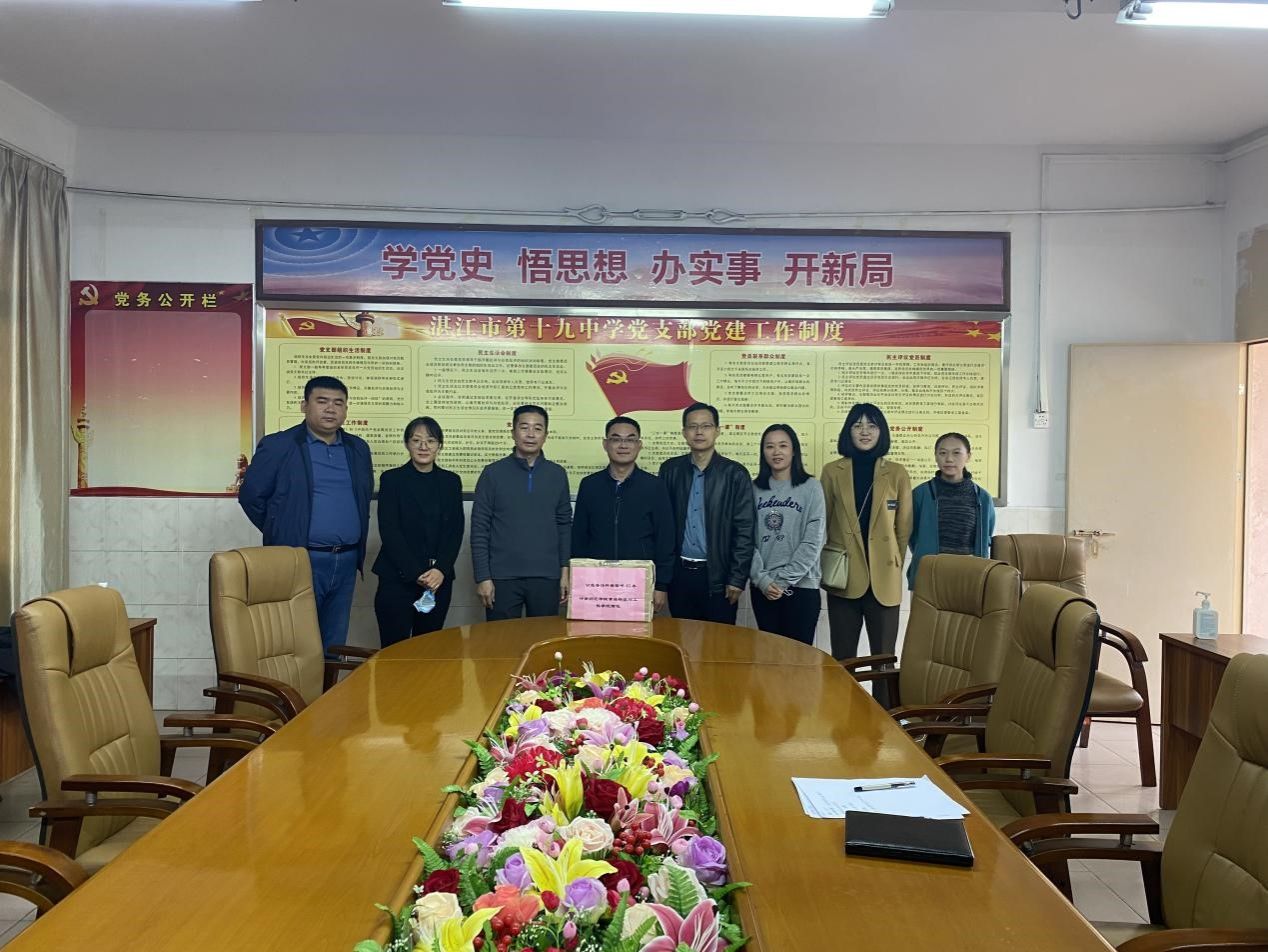 为深入贯彻落实基础教育高质量发展帮扶工作,12月8日下午,食品科学与工程学院邱飞书记带队一行七人前往湛江市第十九中学开展结对帮扶调研。参加调研会的人员有副院长(主持行政全面工作)王标诗、副书记刘淑芬、烹饪与营养教育专业教师李锐、辅导员袁嘉渝以及两名22级烹营中外合作办学项目的学生,湛江市第十九中学许丁西校长、中学部级长陈晓玲以及办公室负责人吴常青。