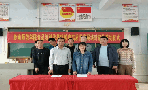3月17日,食品科学与工程学院党委书记邱飞带队一行4人,前往遂溪县杨柑二中开展基础教育高质量发展结对帮扶工作,并举行帮扶协议签约仪式。参加活动的人员有学院党委书记邱飞、副书记刘淑芬、烹饪与营养教育专业教师李锐、辅导员袁嘉渝,杨柑二中校长周蝶及学校其他班子成员。会议由邱飞主持。