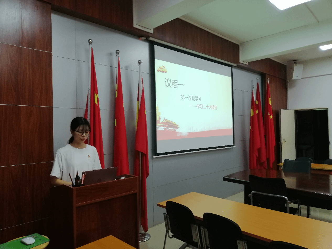 支部宣传委员陈佳虹首先带领与会人员进行第一议题学习,深刻学习和领会党的二十大精神。她表示,学习宣传贯彻党的二十大精神是当前和今后一个时期全党全国的首要政治任务,事关党和国家事业继往开来,事关中国特色社会主义前途命运,事关中华民族伟大复兴,对于动员全党全国各族人民更加紧密地团结在以习近平同志为核心的党中央周围,高举中国特色社会主义伟大旗帜,坚定道路自信、理论自信、制度自信、文化自信,为全面建设社会主义现代化国家、全面推进中华民族伟大复兴而团结奋斗,具有重大现实意义和深远历史意义。