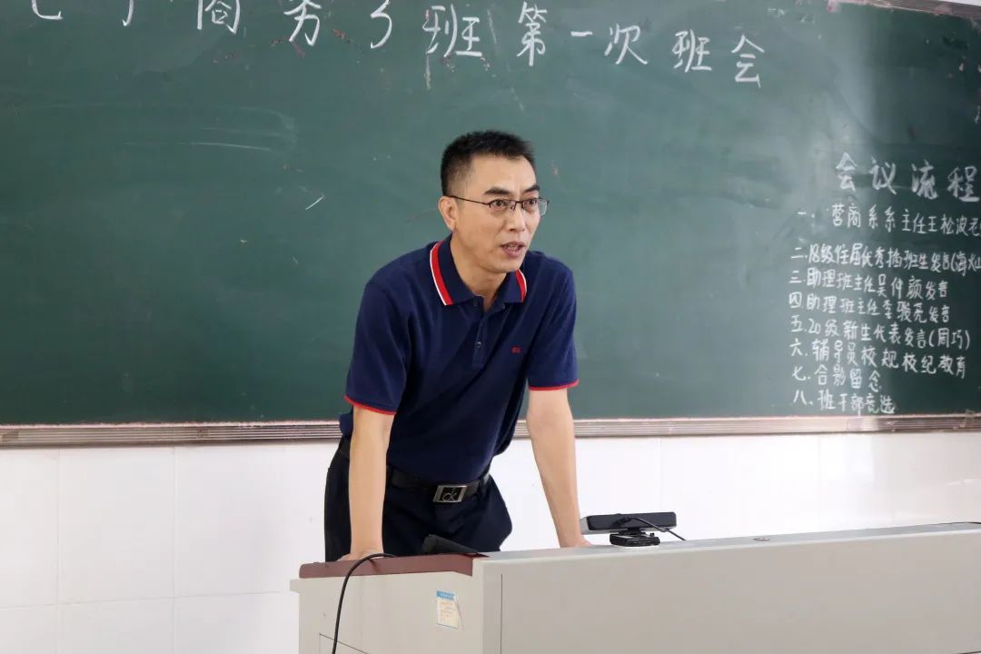 王松波对来自全省各地的同学表示欢迎并提出三点建议:一是在学习方面,要定好目标和规划,从现在开始规划毕业去向,了解考研院校、专业等,利用学校提供的资源不断锻炼自身,同时提醒同学们在完成目标之前要完成大学学业的基本要求,达到绩点和学分要求,拿到毕业证和学位证。二是在生活方面,要先学做人再学做事,要求同学们遵守法律和校规,积极参加各类比赛和创业实践,特别是三创赛、挑战杯、创新创业类等比赛,通过比赛丰富知识,提升自我能力。三是在健康方面,要坚持锻炼身体和积极参加集体活动。最后他希望班级能成为一个团结友爱、互相帮助、共同进步的大家庭。