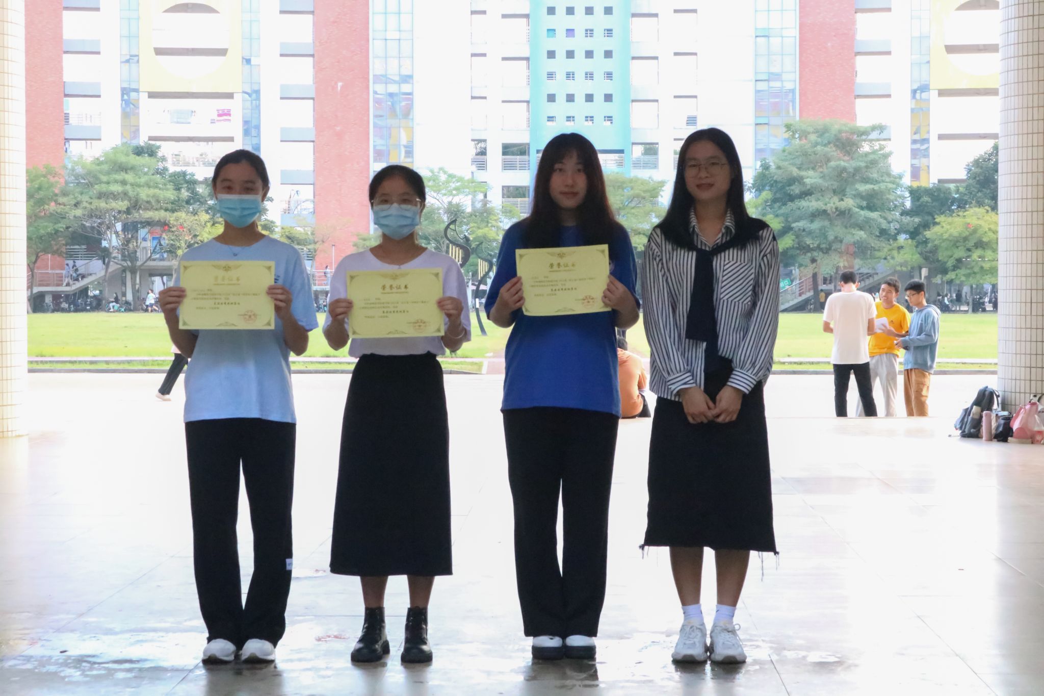 主持人公布评比结果,并为获得活动晨读优胜奖、晨读优秀奖、晨读创新奖的班级颁发奖状,经过评比,22市场营销班、22国际经济与贸易、22财务管理班获得晨读优胜班奖项;22财务会计班、22工商管理班、22电子商务班获得晨读优秀班奖项;此外,22国际经济与贸易班和22市场营销班还获得了晨读创新班奖项。