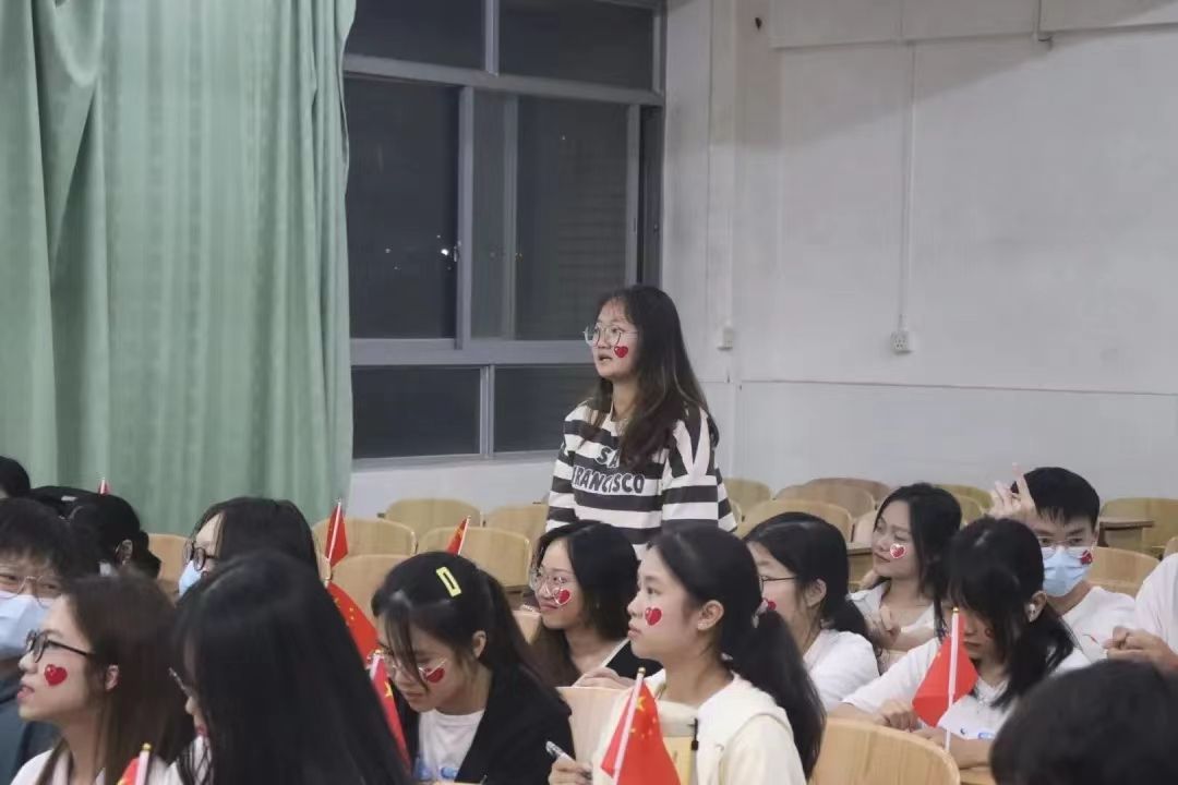 在党史知识竞答环节,同学们踊跃举手,现场气氛活跃,充分展现出同学们作为一名共青团员稳重扎实的党史知识和昂扬向上的精神面貌。
