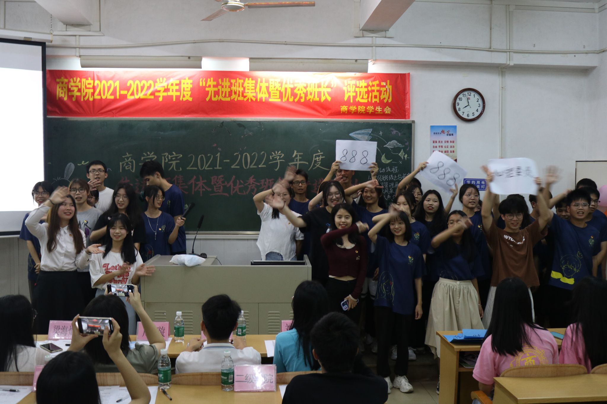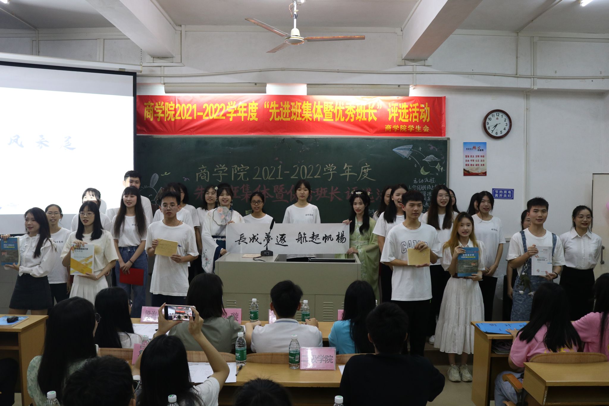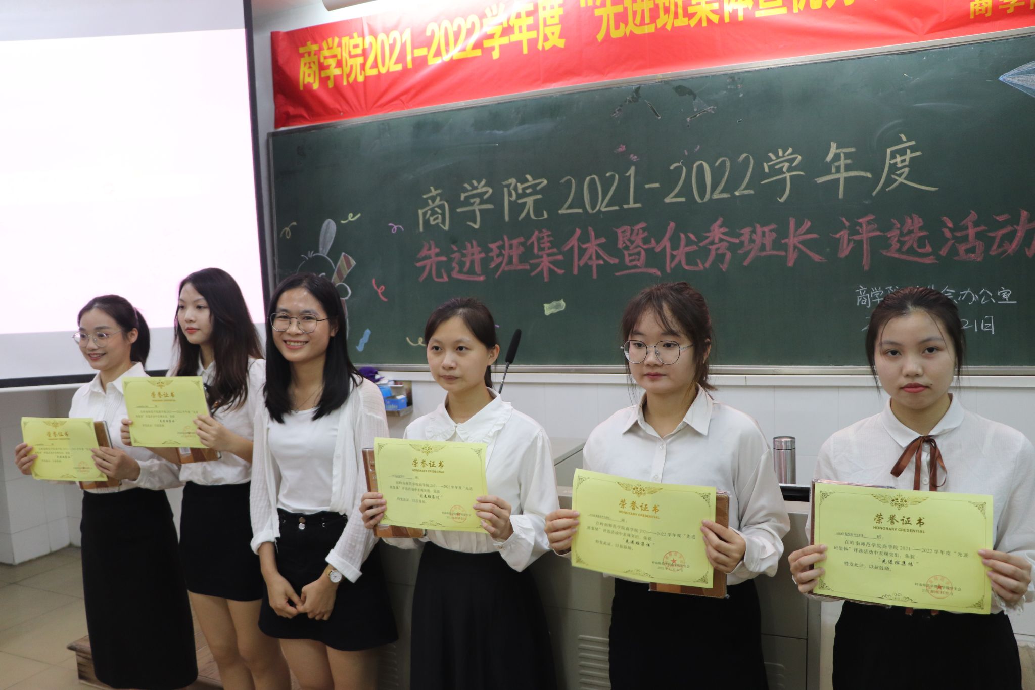 经投票与评选,2021级市场营销班获得2021-2022学年度先进班集体标兵;2021级财务管理1班、2021级财务管理3班、2021级财务会计教育班、2021级国际经济与贸易1班以及2021级国际经济与贸易3班获得先进班集体称号。2021级国际经济与贸易3班获得最佳人气奖。