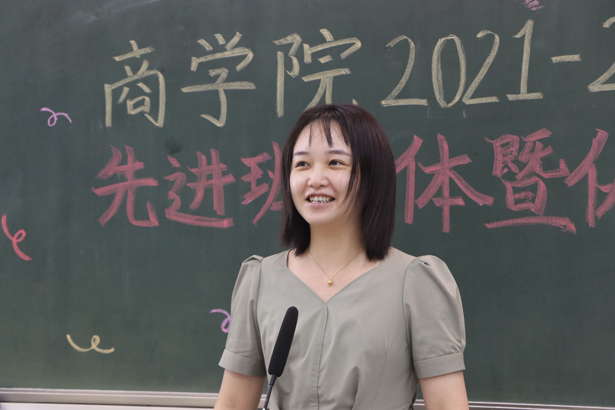 梁海灿对评选的全过程进行简单概述,肯定了同学们的努力对商院发展有很大贡献,对先进班集体的内涵进行讲述,并强调每个人都要为增强班级凝聚力贡献出自己的一份力量。周璇作总结,她对2021级财务会计教育班的歌曲表示高度赞扬,她强调这有利于增进对自身专业的认识,同时要求同学们要努力学习,为学院做贡献。