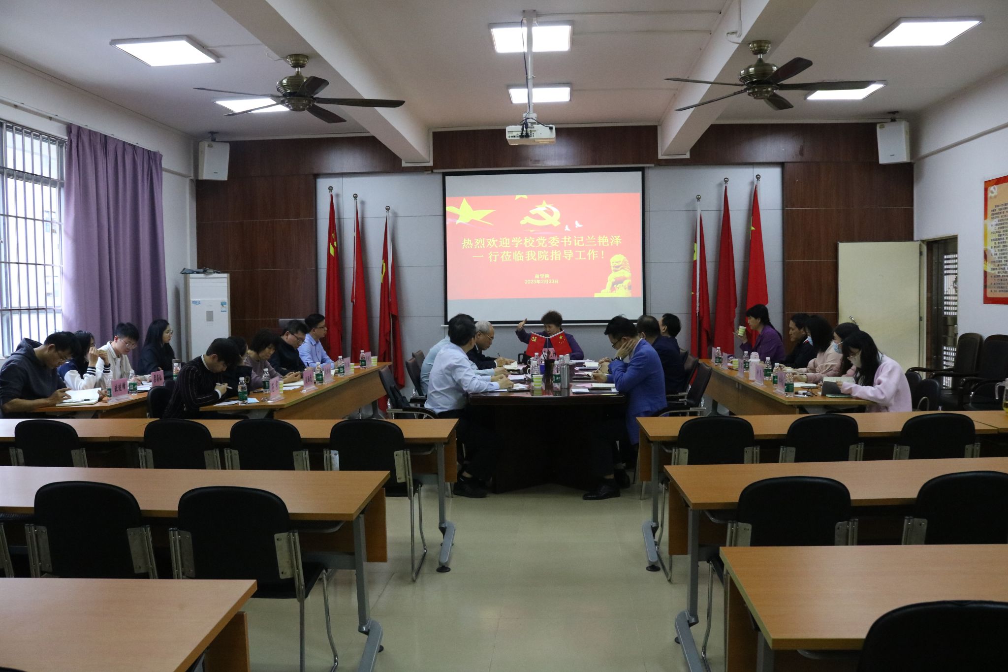 2月23日下午,学校党委书记兰艳泽一行莅临商学院指导工作。商学院领导班子成员、党支部书记、辅导员参加本次会议。