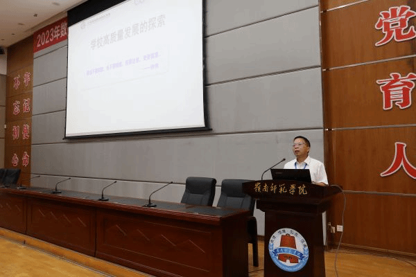 开幕式由我院党委副书记全光华主持,学校党委副书记黄达海致辞。黄达海首先对本次研讨会的召开表示祝贺,对我院历届校友在百忙中抽空出席会议表示热烈的欢迎与衷心的感谢。他指出,习近平总书记在主持中共中央政治局就建设教育强国进行第五次集体学习时强调,教育兴则国家兴,教育强则国家强。建设教育强国,是全面建成社会主义现代化强国的战略先导,是实现高水平科技自立自强的重要支撑,是促进全体人民共同富裕的有效途径,是以中国式现代化全面推进中华民族伟大复兴的基础工程。建设教育强国,基点在基础教育,龙头是高等教育,要坚持把高质量发展作为各级各类教育的生命线,不断提升原始创新能力和人才培养质量。在此背景下,这次研讨会的召开恰逢其时,特别是利用当前学校正在开展学习贯彻习近平新时代中国特色社会主义思想主题教育的契机,就数学教育高质量发展与卓越人才培养进行深入的探讨,有着十分重要的现实意义。同时,他从办学规模、师资队伍、人才培养及学科专业建设等方面通报了学校办学的最新发展情况,对我院近年来取得的成绩也表示了充分肯定。此外,他提出三点希望:一是希望校友们敞开心扉、畅所欲言,共商人才培养高质量发展大计;二是希望全校上下要联系校友、服务校友、依靠校友,助推学校高质量发展;三是希望校友和母校同心同德、同频共振,共赢未来高质量发展。