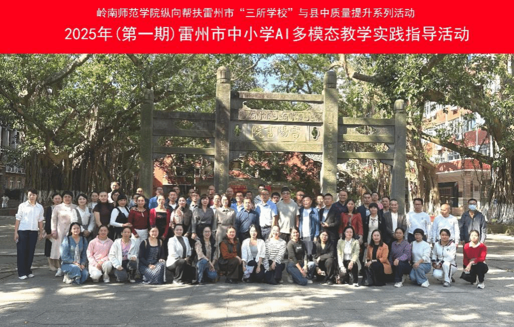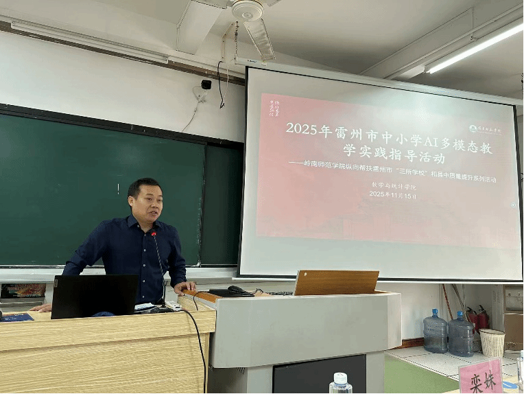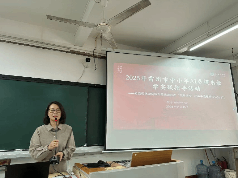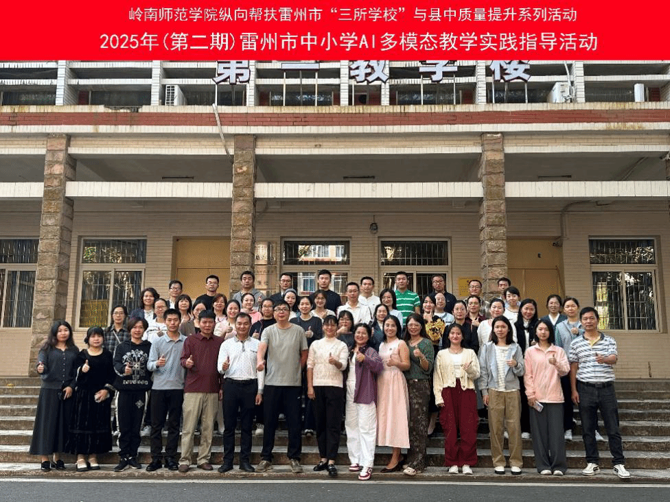 为深入贯彻《广东省 “百县千镇万村高质量发展工程” 教育行动方案(2023—2027 年)》《广东省师范(教师教育)院校纵向帮扶欠发达地区 “三所学校” 和县中质量提升工作方案(2024-2027 年)》精神,落实 AI + 战略行动,提升教师人工智能环境下的教学创新能力,2025 年 11 月 15 日至 16 日,岭南师范学院数学与统计学院在数据科学与智能计算省级校企联合实验室面向雷州市中小学校成功举办 “2025 年雷州市中小学 AI 多模态教学实践指导活动”。活动分两期开展,反响热烈、圆满落幕。