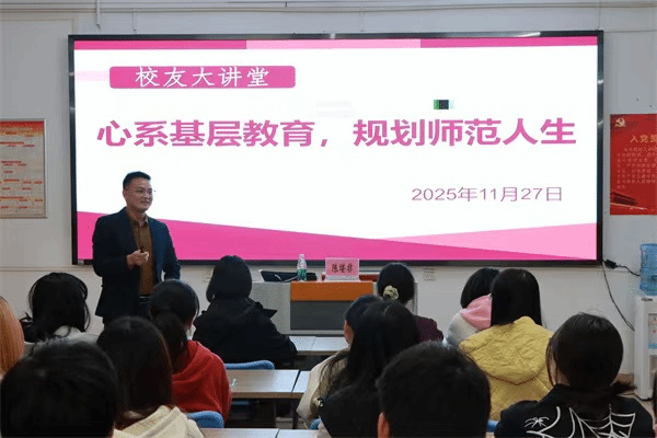 他还根据自身发展经历将教师职业生涯精准划分为入职适应期、成熟骨干期、职业发展期三个阶段,针对性地给出“拜师学艺、深耕学科、担当班主任、积极参与教科研”等实操性建议。他结合行业现状与基层实际,提出“先就业再择业”的理性建议,为学子职业规划提供切实参考。
