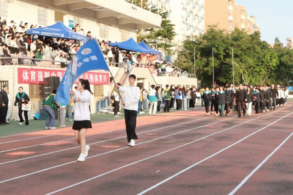 开幕式现场气氛热烈,精彩纷呈。田径场上红旗招展,铿锵鼓点与激昂乐声交织回响,奏响力与美的华彩乐章;矫健的雄狮随着节奏摇头摆尾,展现着传统与现代交融的蓬勃生机。我院方阵成员目光坚毅、步伐铿锵,以整齐划一的步伐,器宇轩昂地经过主席台。“数计数计,齐心协力,斗志昂扬,再创辉煌”,嘹亮的口号响彻整个雷阳田径场,这不仅是口号,更是数计学子团结一心、锐意进取的集体誓言,充分彰显了无畏挑战、奋发向上的精神风貌。