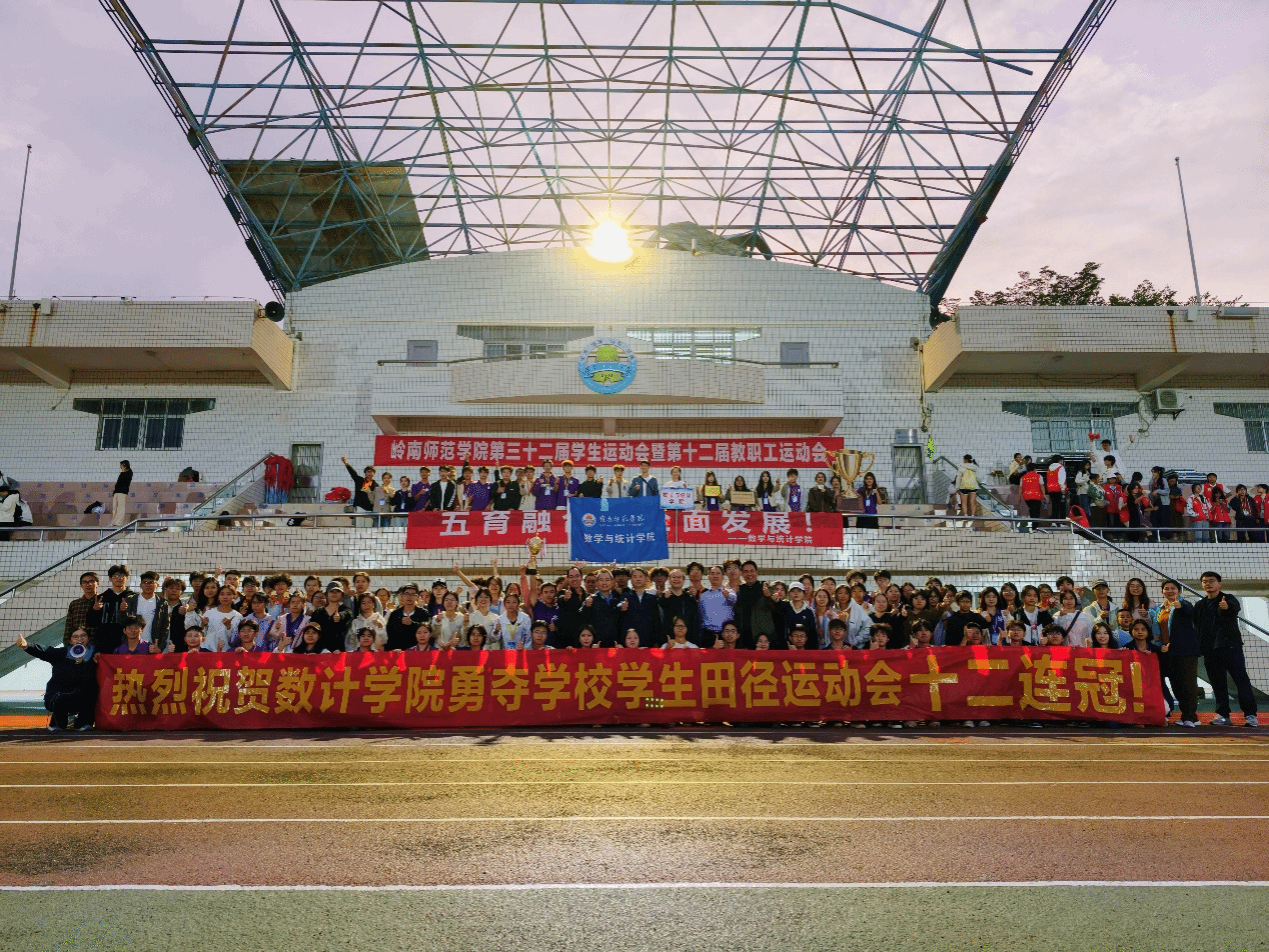 岭南师范学院第三十二届学生运动会暨第十二届教职工运动会于雷阳区田径运动场隆重开幕。赛事期间,数计学院运动健儿奋勇争先、顽强拼搏,最终以团体总分295分斩获十二连冠,实现了运动成绩与精神文明的双丰收,彰显了我院学子卓越的竞技水平与昂扬的精神风貌,完美诠释了“五育融合,全面发展”的育人理念。