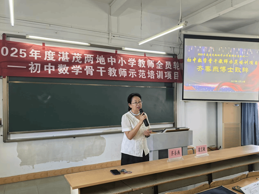 9月14日,2025年度湛茂两地中小学教师全员轮训(初中数学项目)于榕燕楼505举行开班典礼,我院齐春燕副教授、梁宝敏老师、张嫣老师和全体学员参加开班典礼。活动由班主任梁宝敏主持。