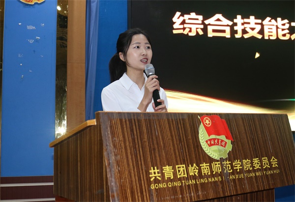 在表彰大会上举行了综合技能之星的现场比赛,比赛分为个人展示、专业展示和综合答辩等环节。数学与应用数学、信息与计算科学、金融学和统计学4个专业里筛选出了4名同学参加了本次比赛。舞蹈《千年游》的优美表演后,15数本1班的陈庆同学以出色表现终获 “综合技能之星”。
