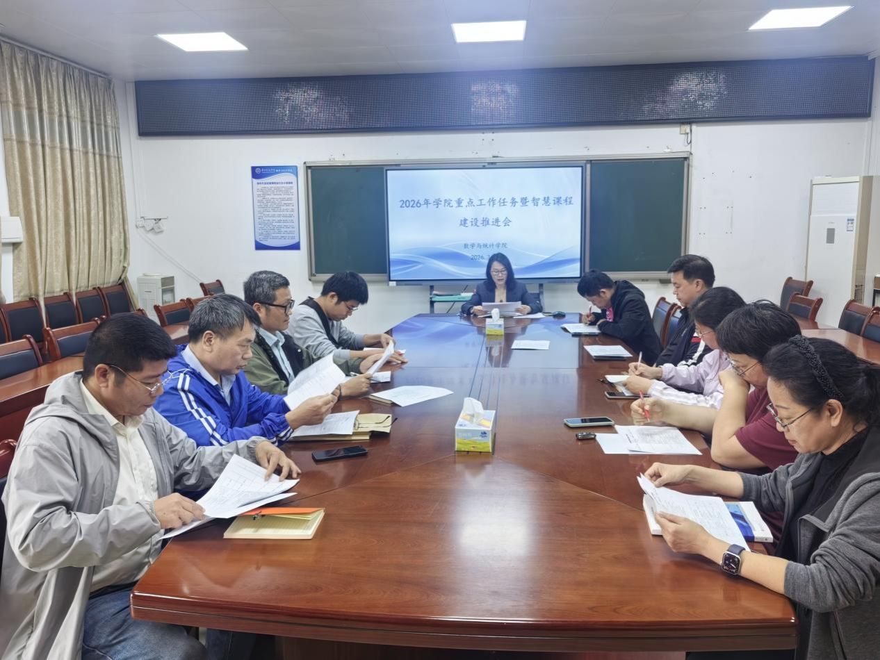 3月18日,数学与统计学院在学院会议室召开2026年重点工作任务暨智慧课程建设推进会。学院院长、各系正副主任、各教研室主任参加会议。会议学院院长栾姝教授主持。