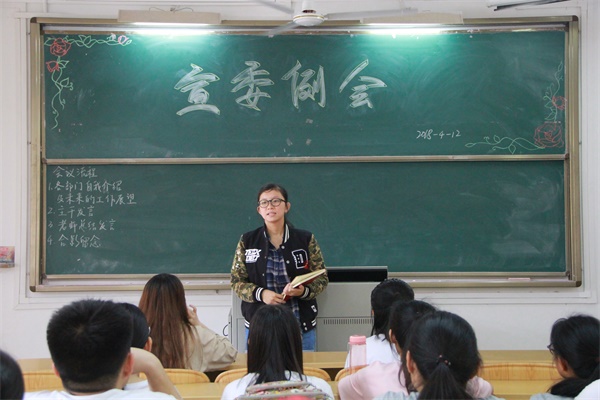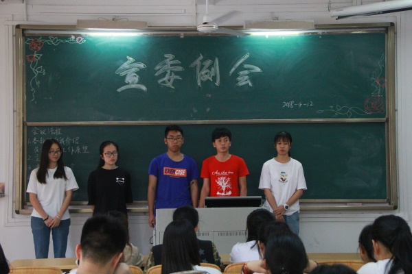 新学期,新气象。我院宣委工作委员会第十五届干部见面会暨工作例会于4月12日在榕燕楼103召开。宣委会指导老师林韵,主任彭放,副主任伍苑晴以及全体宣委会学生干部参加了本次会议。