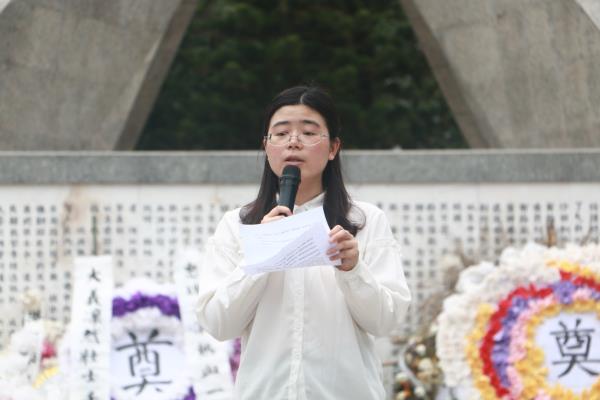 活动现场(李卓贤摄)年年祭扫先人墓,处处犹存长者风。为缅怀革命先烈,感恩革命烈士,4月13号中午,我院组织学生到寸金烈士陵园扫墓。付怡老师,16、17级全体学生以及主要学生干部参加了本次扫墓活动。在学生干部的带领下,排着整齐队伍向寸金烈士陵园出发。在烈士陵园纪念碑前,老师和同学们依次向烈士们献花,为革命先烈默哀一分钟并深深地三鞠躬,表达了对革命先烈的无尽哀思与无尽尊敬。付怡老师致词。她表示,清明扫墓是为了勿忘历史,以史为鉴,告诫学子们不应对历史耿耿于怀,而应化悲痛为力量,以史立志。她劝告学子们通过缅怀先烈,牢记历史赋予大学生的责任感,并要用信心、诚心、雄心去演绎自己精彩人生。同时也激励学子们学习英雄的爱国精神,学习他们为追求真理不畏艰辛、敢于牺牲的高贵品质,为中华民族之崛起而读书。我院朗诵队用低沉有力的腔调吟诵出对烈士英雄英勇事迹的赞歌,以此表达对烈士崇高的敬意和无比的哀思。老师带领全体学生绕纪念碑一周,以此瞻仰纪念碑,感受烈士精神的万古长青、浩气长存。此次扫墓活动加深了我院学子对清明传统节日的理解,深刻认识到国家繁荣富强、社会和谐稳定与人民幸福生活的来之不易。让学子们不仅懂得了要珍惜今天的美好生活,而且要继承先烈革命传统,发扬前辈爱国精神,肩负起大学生的责任。