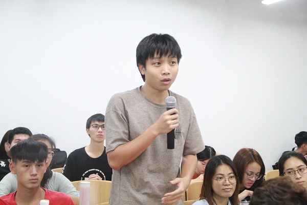 在现场的难题解答环节中,各位班委踊跃参加并向两位辅导员请教了他们在班级管理中出现的难题,两位老师结合实际情况细心、耐心地向同学们进行解答,赢得现场热烈的掌声。