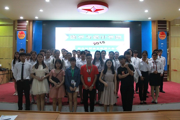 4月22日下午,我院于弘雷楼311室举办2018年学生社团会长换届大会。出席本次大会的嘉宾有我院数学建模指导老师刘雄,团委副书记陈汝倩,校社联干部代表、各二级学院负责人以及各社团会员。