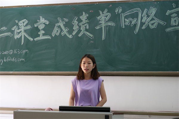 学生会副主席许梦婷通过PPT演示,分四步对“第二课堂成绩单”进行详细解说。从建立“第二课堂成绩单”制度的意义和“第二课堂成绩单”的作用及在我校的发展史方面介绍了“第二课堂成绩单”,说明“第二课堂成绩单”注意事项,介绍了获得“第二课堂成绩单”分数的办法,讲解了“第二课堂成绩单”网站管理系统的使用等。