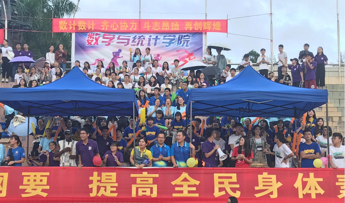 会前,我院后勤组负责搭建大本营和布置看台,设立物资管理组和医药管理组,给运动员们看管财物和保障应急处理;学生干部认真负责,及时在龙虎榜上更新运动员们的赛果;拉拉队也在努力为运动员加油呐喊,高喊“数计数计,齐心协力,斗志昂扬,再创辉煌”为运动健儿们加油、打气。即使中途下起了雨,拉拉队也坚守看台,撑伞为运动员加油。我院领导老师也到现场为运动员们加油鼓励,并肯定了他们的付出与收获。
