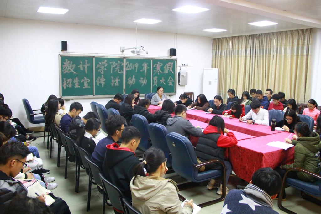 寒招动员大会让同学们对寒招活动有了进一步的了解,并希望数计学子在实践中锻炼自己,提升自我。至今,我院共有135人报名参加,有14支组队参加,已超过学校给予学院的指标数,也期待今年的寒招队伍获得好成绩。