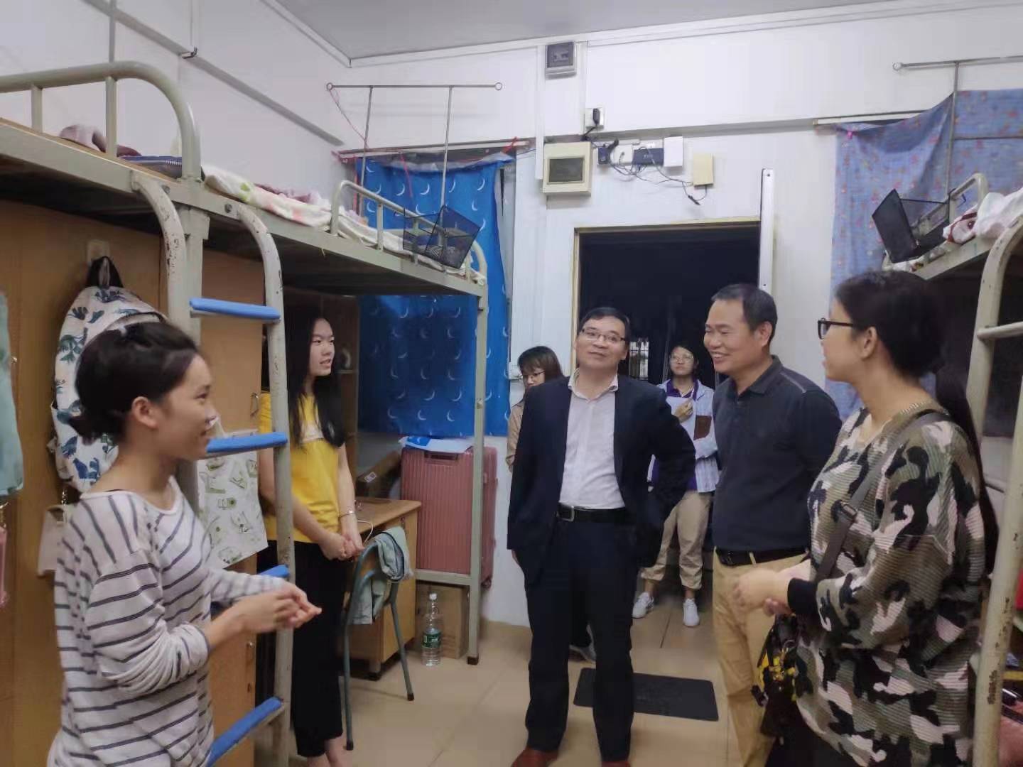 新学期开学前,为了深入了解学生返校、学习和生活等情况,3月2日晚,我院党委书记李健彬、副书记唐洪浪,学院副院长刘小松、吴勇旗,辅导员林韵、代超群分别到本学院的学生宿舍进行走访。