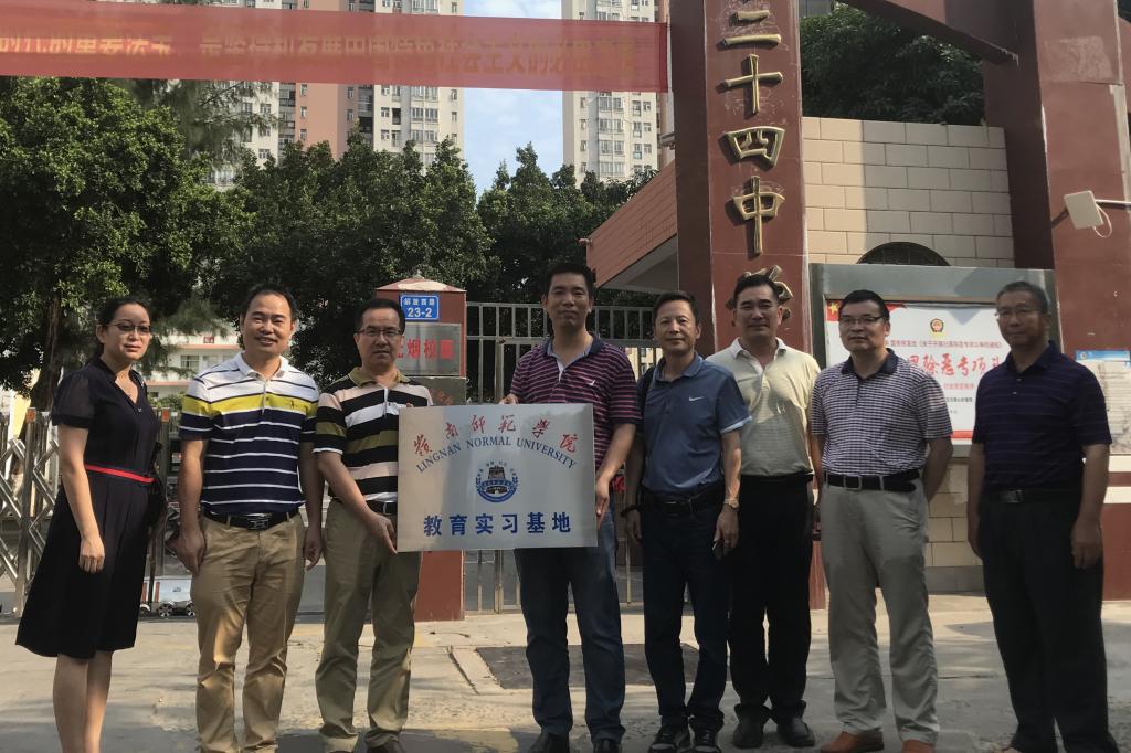 为了进一步拓宽教育实习基地,对标对表做好数学与应用数学专业认证的准备工作,4月26日下午,我院党委李健彬书记一行5人赴湛江市第二十四中学参加教育实习基地挂牌仪式,受到该校韩宁校长等领导的热烈欢迎和热情接待。短暂的挂牌仪式结束后,双方互相介绍了各自的校情和办学成效,分别就教育见习和实习、人才培养、教师培训、教育课题和奖项申报以及党建育人等工作进行了详细的交流和探讨,并表示将以此为契机,共建共进,共同推进办学事业的发展。交流座谈后,在韩校长等领导的陪同下,参观了美丽整洁的校园。