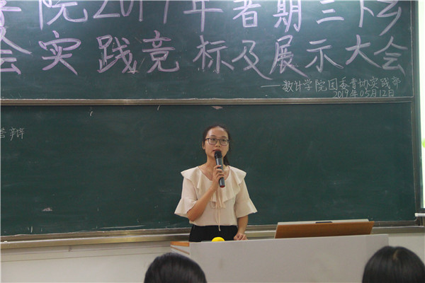 本次大会共有14支实践队伍进行竞标以及6支实践队伍进行展示。竞标大会分ppt讲解和答辩两部分。各实践队伍依次上台从基地情况、队伍组成、特色活动和宣传工作等方面进行讲解,并对评委的提问作出精彩的答辩。6支来自2017级和各学生组织的实践队伍对其队伍的进行了介绍和展示。