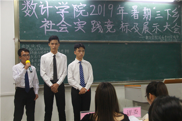 5月12日晚,我院于榕燕楼307室召开2019暑期“三下乡”社会实践竞标及展示大会。我院辅导员代超群老师,校实践部副职负责人房嘉琪,往年社会实践队优秀个人邓紫娟和优秀队长陈彩娃担任竞标会评委,我院主要学生干部和各班代表参加了大会。