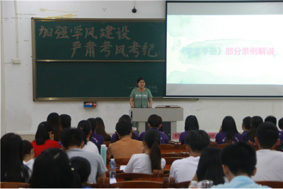 近日,我院于弘雷楼611室举办2018-2019年度第二学期期末考风考纪动员大会。我院党委唐洪浪副书记,辅导员林韵、代超群,全院干部及非毕业班学生代表参加了本次大会。