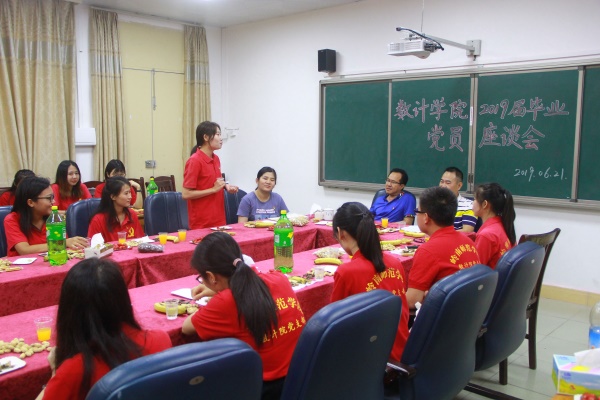 6月21日,数计学院党委于榕燕楼会议室召开2019届毕业生党员座谈会,畅叙师生情谊,共谋母校未来发展。参加本次座谈会的有数计学院党委书记李健彬、副书记唐洪浪、辅导员代超群及35位毕业生党员。